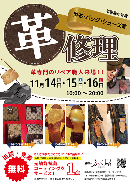 革製品専門のリペア職人をお招きし、修理相談会を開催いたします。