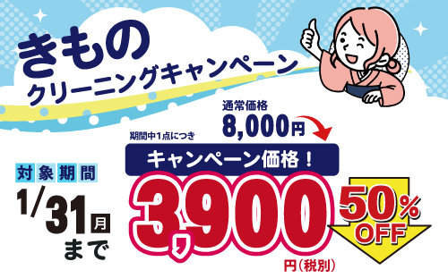 期間中、きものの丸洗いが50%OFF のお得なキャンペーンです。