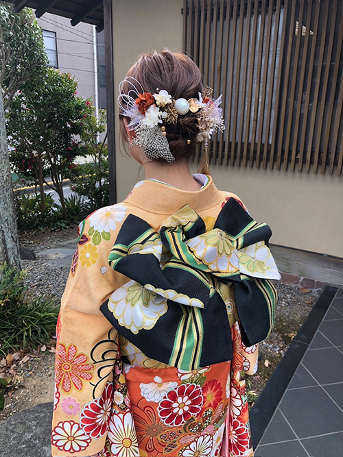 ・水引&金箔アレンジ: 髪に直接金箔をあしらったり、水引を自由に形作って飾るスタイルが洗練された印象を与えます。