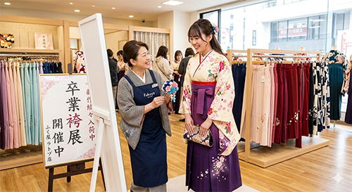 私たち「きものと帯 ふく屋」は、130年以上の歴史の中で、いわき市の多くの門出をお手伝いしてきました。