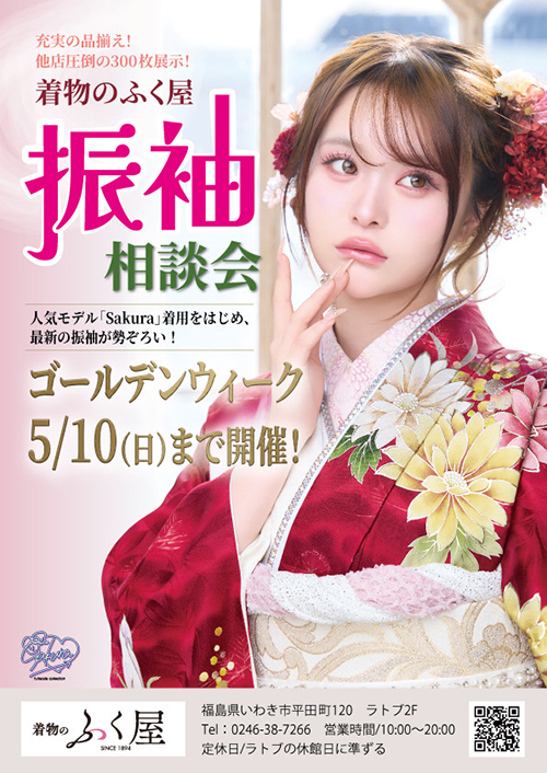 きもののふく屋では、5月10日まで「ゴールデンウィーク振袖展」を華やかに開催いたします。
